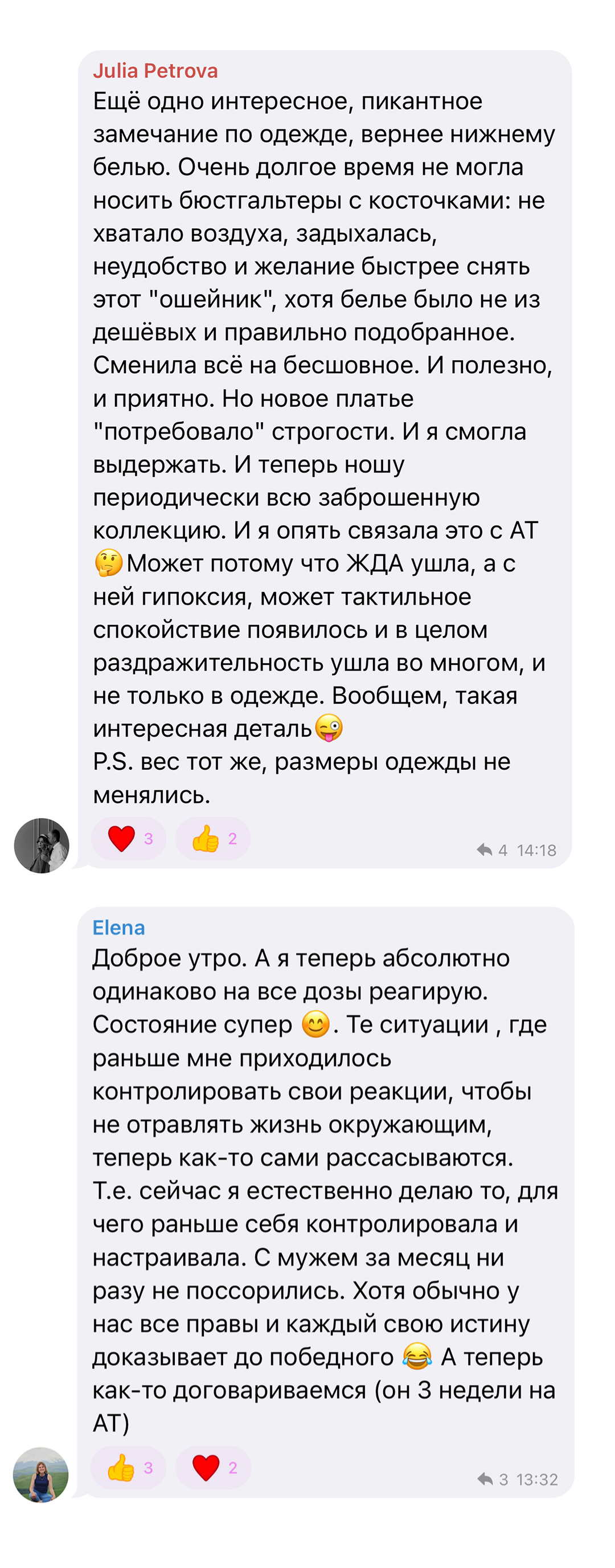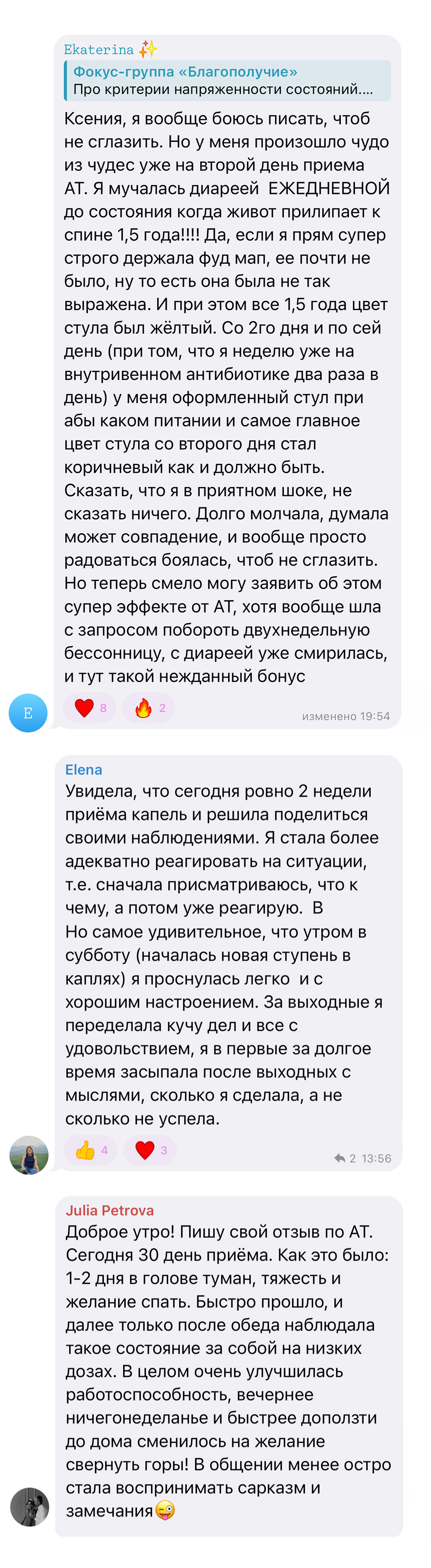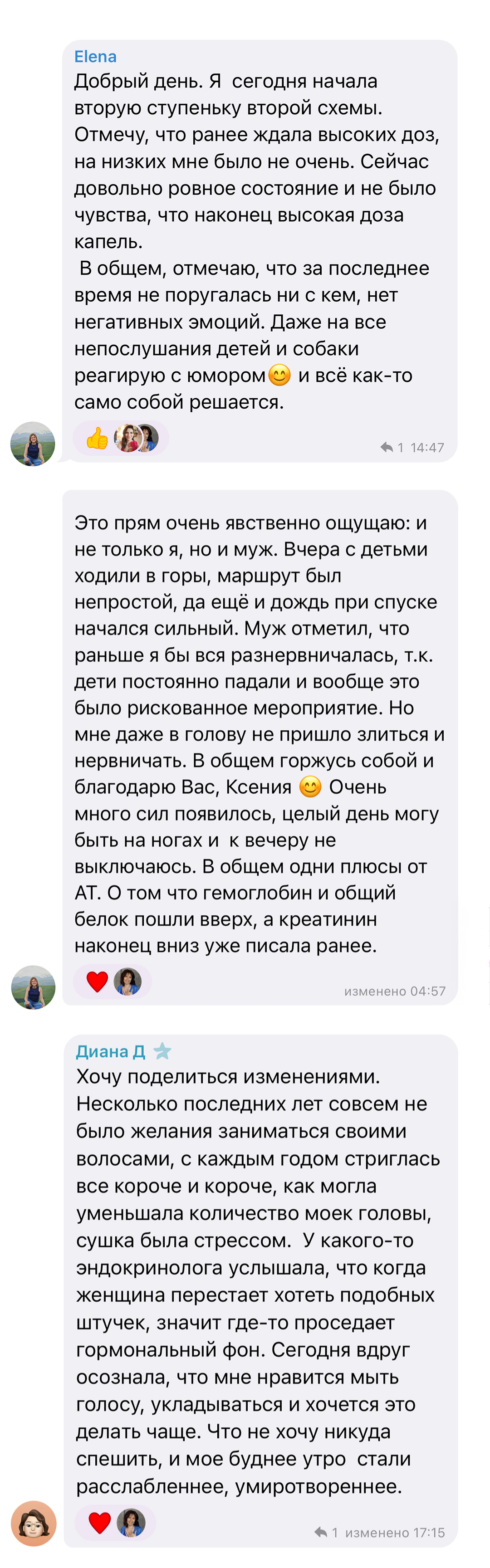 «Стала спокойнее, реагирую более ровно на стрессовые ситуации, наладился стул»